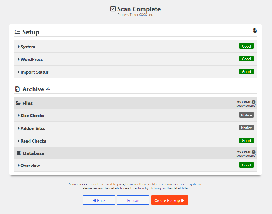 If the scanner shows warnings for large files/databases, you might have issues if you’re on a shared-budget host. However, if you have access to your own server or VPS, you should be able to easily follow the instructions for timeouts and get Duplicator running without any issues.